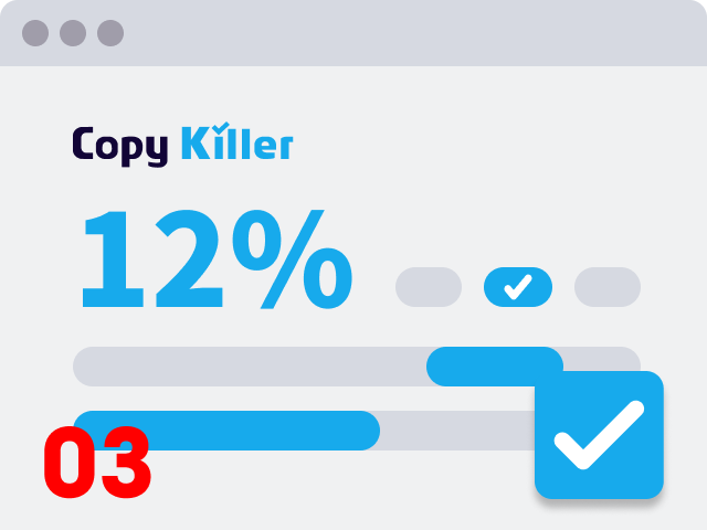 CopyKiller(拷贝克星)是MUHAYU公司推出的中文文献和论文查重系统。 用户可以在累计收录100亿份以上国内外学术文献、互联网资源的系统数据库,以及自建库中的海量文献进行比对,分析文献之间的相似程度。 结合大数据与人工智能的自然语言处理技术,我们提供最合理、最精准的检测结果。